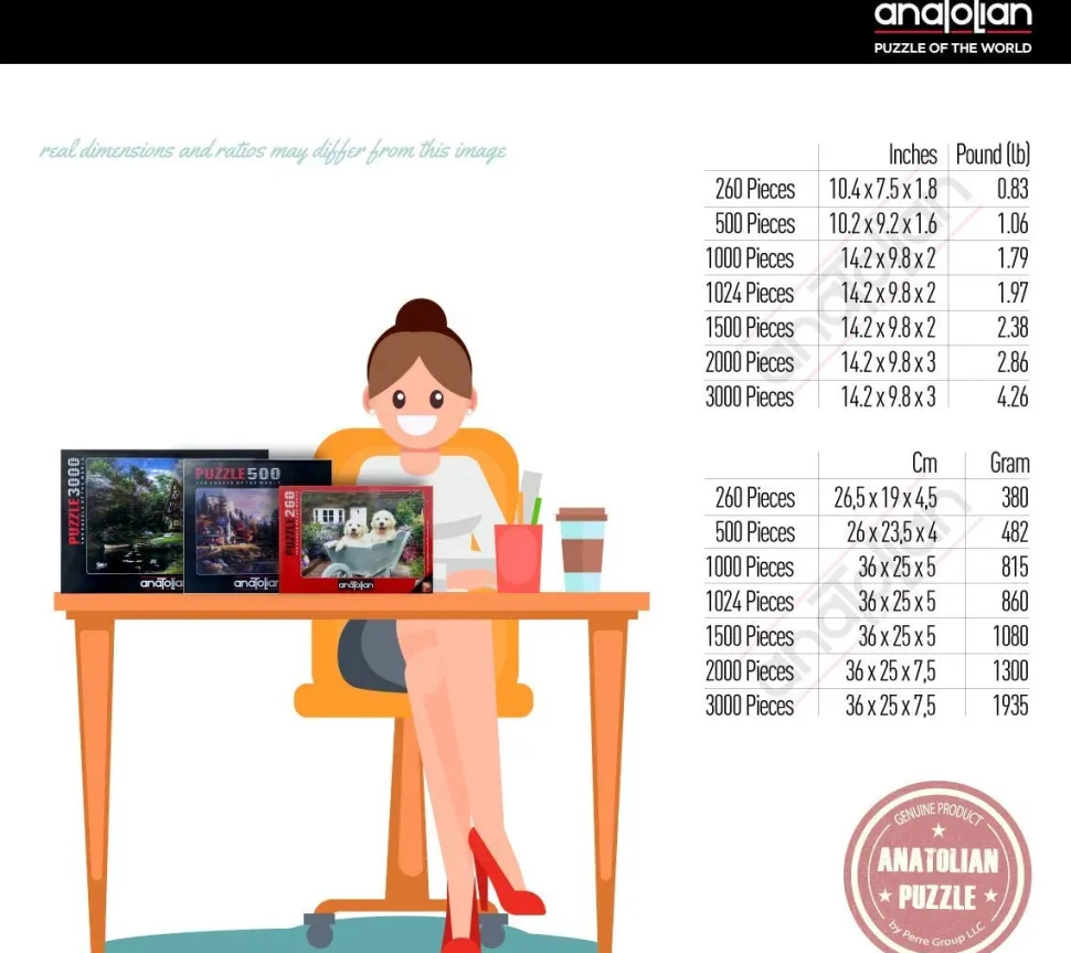 - Thick and sturdy pieces make assembling Pere/Anatolian Puzzles smooth and fun