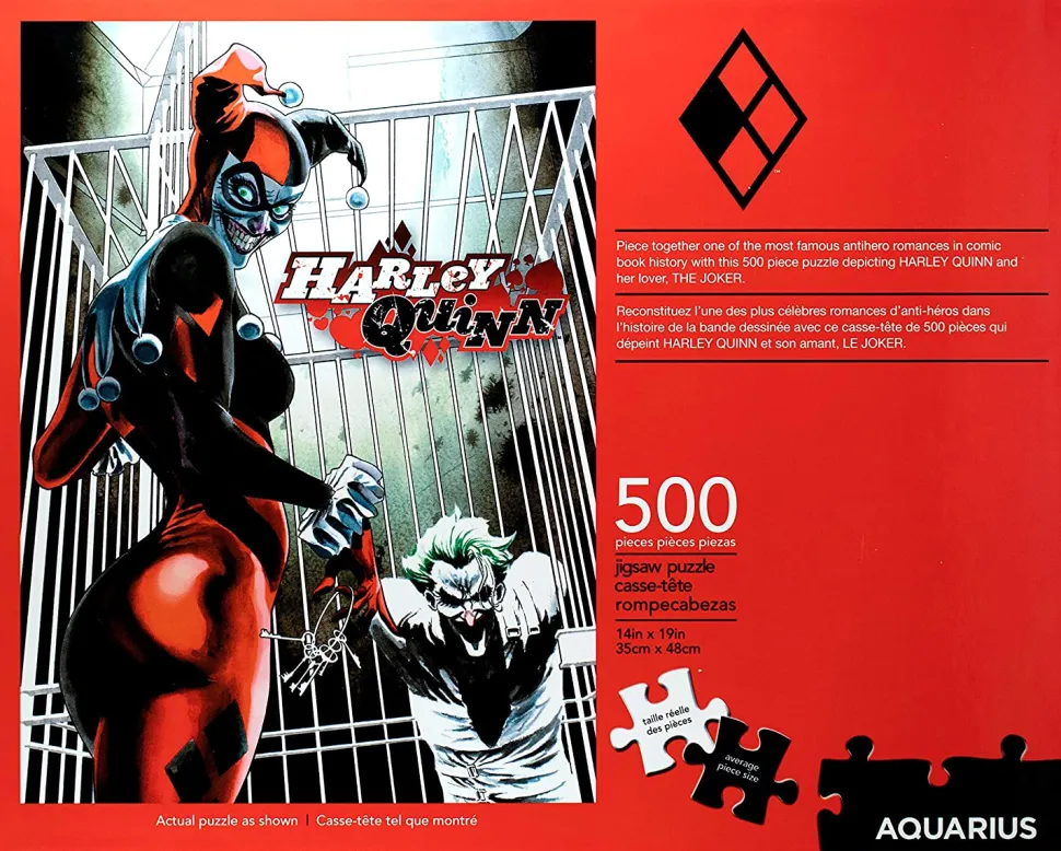 Piece together one of the most famous antihero romances in comic book history with this 500 piece puzzle depicting Harley Quinn and her lover The Joker.