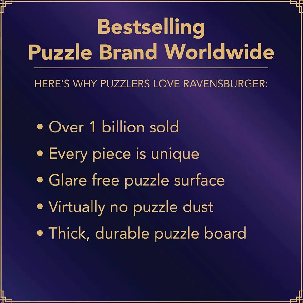 - Anti-Glare surface – Ravensburger puzzles use an exclusively developed, extra-thick cardboard combined with our fine, linen structured paper to create a glare-free puzzle image and give you the best experience possible.