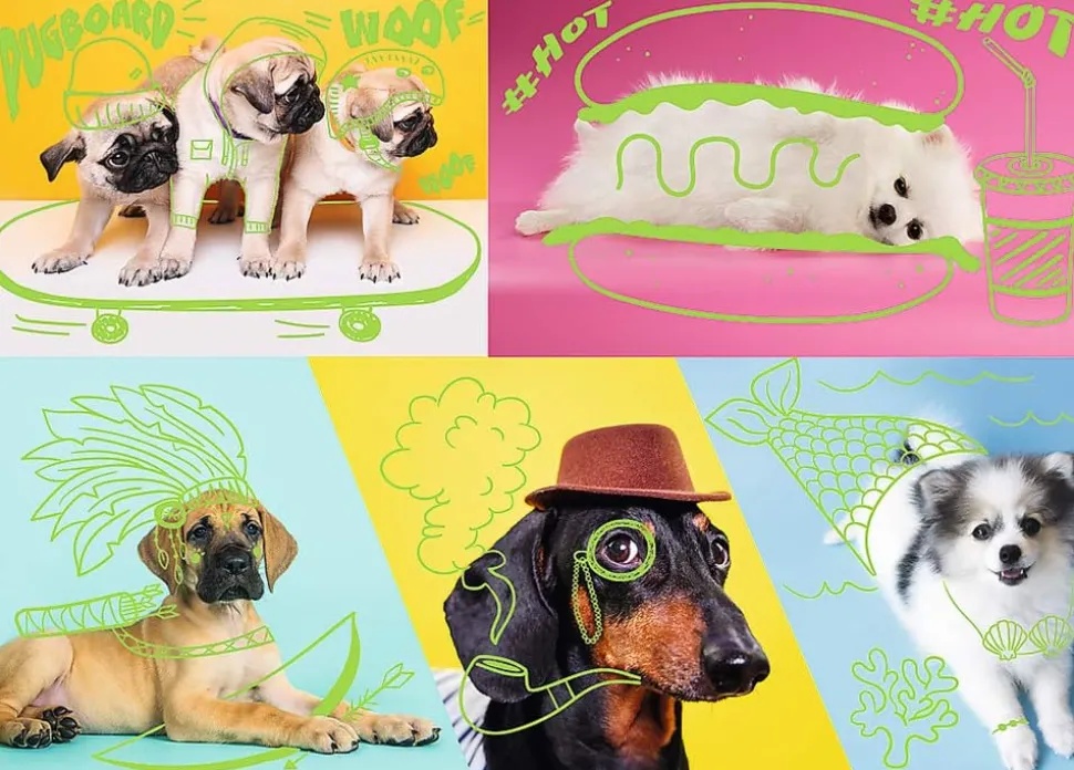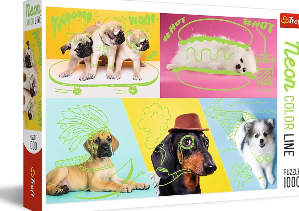 - Challenge yourself, family and/or friends to complete this 1000 piece jigsaw puzzle of NEON highlighted funny dogs